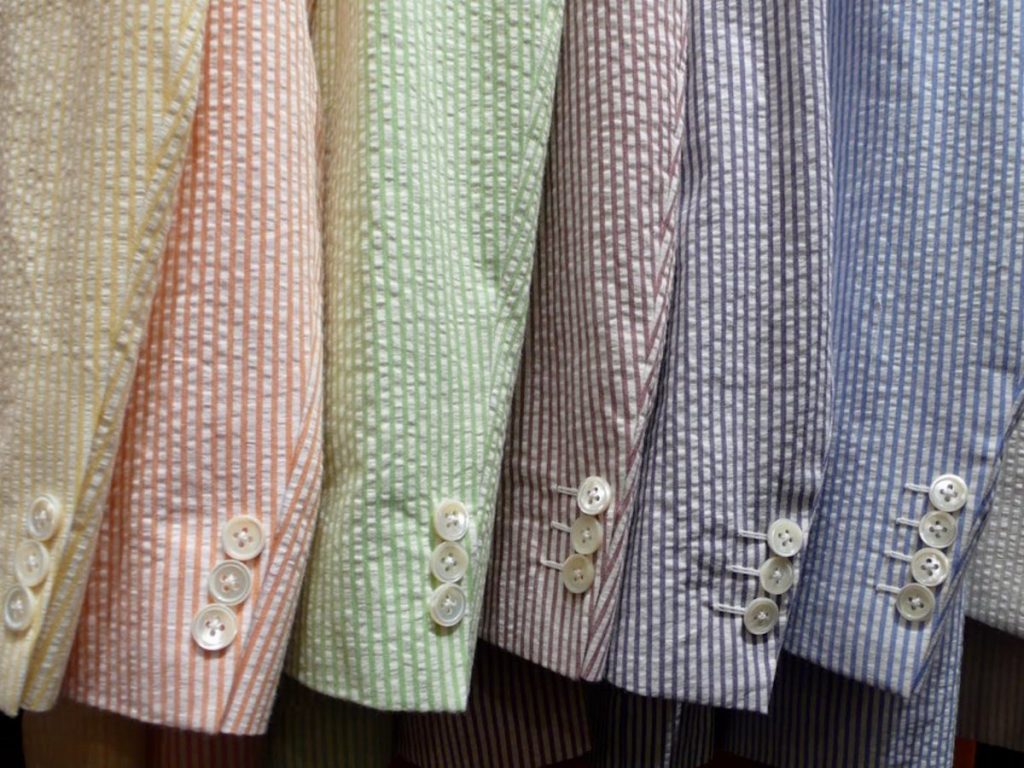 The Suiting Fabrics The Heritage Textures: Warmth & Character TweedA coarse, durable wool known for its rugged texture and charming, rustic aesthetic Flannel (Brushed Wool)A medium-to-heavyweight material with a soft, brushed nap, offering luxurious warmth Cashmere BlendsA high-end material prized for unmatched softness, fine drape, and subtle natural luster Corduroy & VelvetStatement materials featuring unique ribbing (corduroy) or a dense, plush pile (velvet) for a luxurious, textured finish The Professional Grade: Shape Retention Worsted Wool (Medium Weight)A refined, smooth material woven for endurance, structure, and superior shaping Hopsack WoolAn open, basket-weave structure that promotes air circulation and naturally resists wrinkling Mohair BlendsA high-resilience fibre that adds crispness, strength, and a slight, desirable sheen to the material The Light Touch: Coolness & Ease LinenAn incredibly light and highly breathable natural fiber, known for its beautiful drape and natural, elegant creasing Cotton (Twill & Gabardine)A versatile, soft material offering good breathability and excellent body for general-purpose tailoring. SeersuckerA lightweight cotton textile featuring a unique, puckered surface texture that ensures maximum air flow